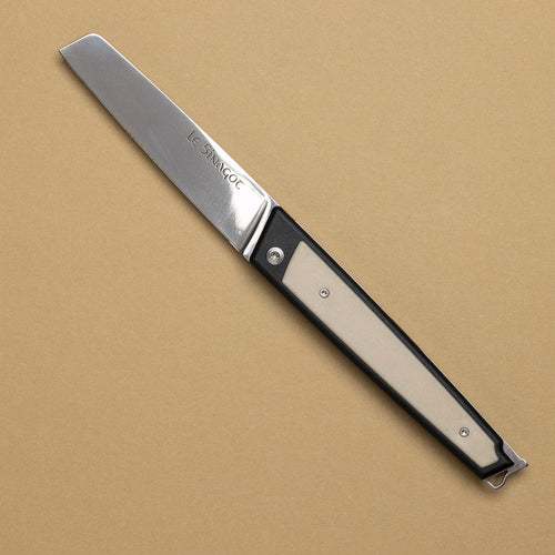 Depuis longtemps Lionel rapporte de chaque région visitée un couteau pliant , témoin du savoir-faire et de l'identité des territoires qu'il parcourt. Un constat s'imposait, au cœur de sa propre région, il n'existe aucun couteau emblématique capable de porter fièrement les couleurs de la "Petite Mer". C’est de cette idée qu’est né le Sinagot.